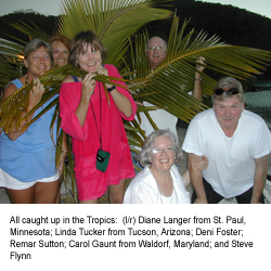 "I was sitting outside on the sail back," Patty Borja wrote, "a sliver of a moon shining against a black sky. We began singing Christmas carols. Three women harmonized. One of the women had actually sung at a major-league baseball game, and she sang "The Star Spangled Banner" for us. Oh, to have these experiences and memories!"